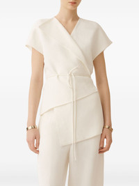 wrap-style blouse Highlights - White - Self-tie fastening - V-neck - Short sleeves - Asymmetric hem Made in Italy Composition Fabric 100% Washing instructions Read Manufacturer Guidelines