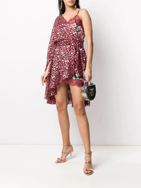 one shoulder metallic-embellished dress Burgundy one shoulder metallic-embellished dress from Faith Connexion featuring a one shoulder design, a lace detail, an asymmetric hem, a metallic sheen and a short length. Imported Composition Silk 100%, Polyamide 100%, Viscose 89%, Metallized Polyester 11% SIZE & FIT Model measurements Height 5 ft 10 in(1.78 m) Bust/Chest 33.07 in(84 cm) Hips 35.82 in(91 cm) Waist 25.98 in(66 cm) FittingInformation This piece fits true to size. We recommend you get your regular size Designed for a close fit at the bust and waist, but loose at the hip Made with a lightweight non-stretch fabric Washing instructions Dry Clean Only