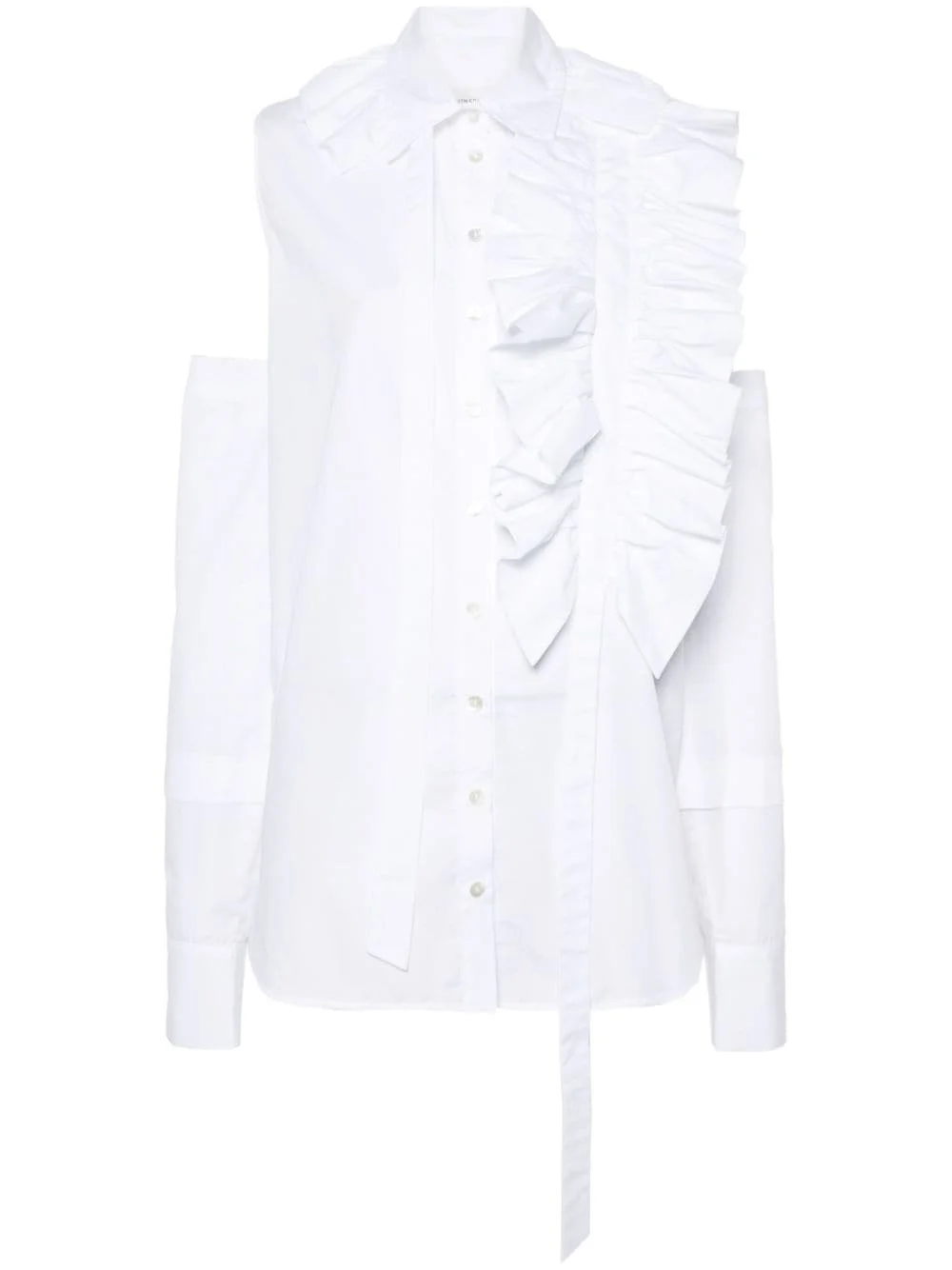ruffle-detail poplin shirt Highlights - White - Cotton - Poplin texture - Spread collar - Ruffled detailing - Sleeveless - Detachable sleeves - Buttoned cuffs - Asymmetric hem - Front button fastening Imported Composition Cotton 100% SIZE & FIT Model measurements Height 5 ft 9 in(1.75 m) Bust/Chest 34.64 in(88 cm) Hips 36.61 in(93 cm) Waist 26.37 in(67 cm) FittingInformation Designed for a relaxed fit, this piece allows for comfort and movement when worn Made from a midweight non-stretch fabric This piece fits true to size – take your usual size