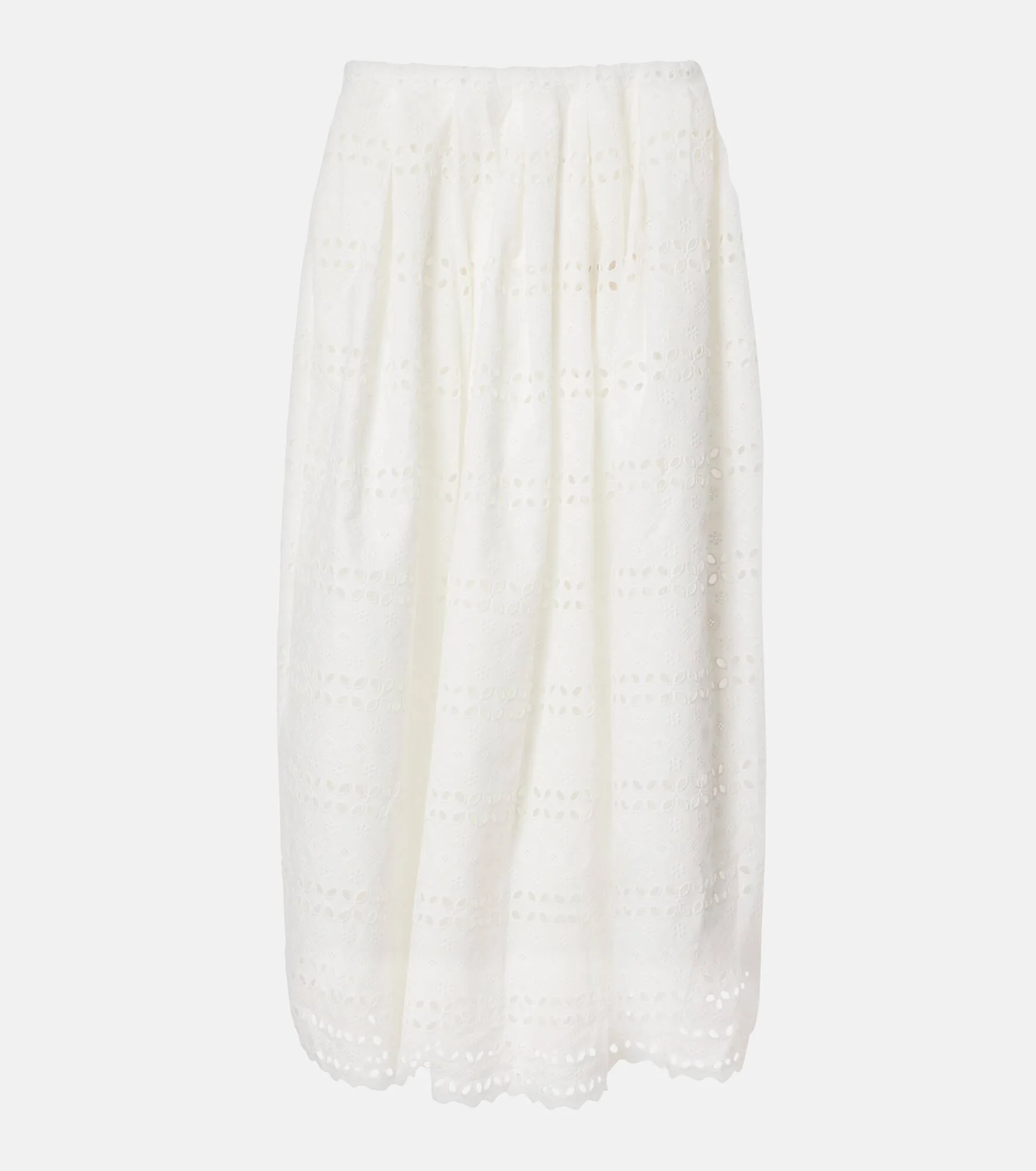 True to Faithfull's ethos, the Abajo midi skirt brings the brand's passion for travel and summertime into focus. The piece features a broderie anglaise finish and an elasticated waistband. Product Details - Material: 65% polyester, 35% cotton - Care instructions: hand wash - Made in Indonesia - Color: white - Designer color name: Rosa Broderie White - Item color: white - Lining: 100% cotton - Pockets: side slit pockets - Elasticated waistband - Item number: P01130353 Size & Fit - True to size - Elasticated waist - Non-stretchy fabric - The model seen in the picture is 178cm-5'10" and wearing a size XS