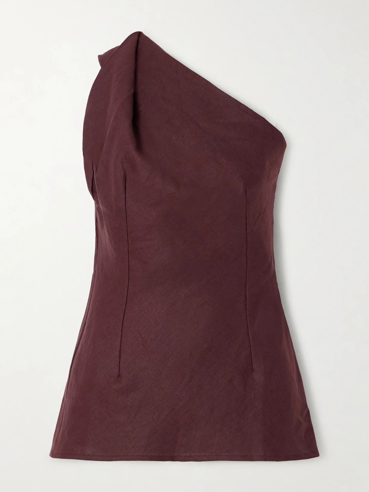 Faithfull's 'Agua' top is a contemporary classic. It's cut from breathable linen in a rich shade of earthy brown, has a fitted bodice that has defining darts before subtly flaring at the hem. The one-shoulder adds asymmetric appeal.