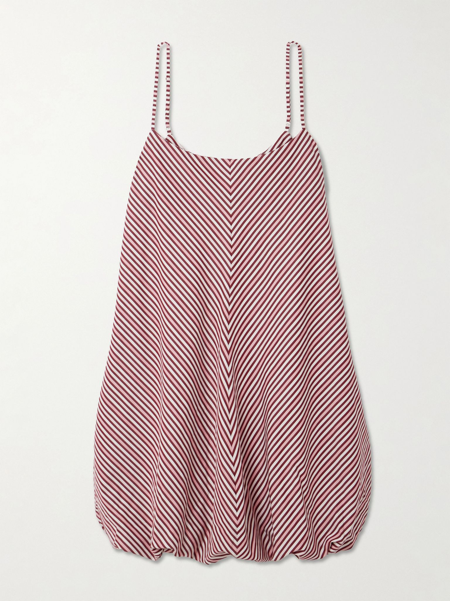 Faithfull's 'Aniela' mini dress has a loose shape with a gathered bubble hem. Made from certified cotton-poplin, it's traced with tonal-pink stripes and has slim straps that can be adjusted for your perfect fit. Size & Fit - Fits true to size, take your normal size - Cut for a slightly loose fit - Fully adjustable shoulder straps - Mid-weight, non-stretchy fabric - Model is 177cm/ 5'10" and is wearing a size X Small Model measurements: - Bust: 85cm/ 33” - Waist: 66cm/ 26” - Hip: 92cm/ 36” Details & Care - Claret, white and pink cotton-poplin - Concealed hook and zip fastening at back - 100% cotton - Fully lined - Hand wash