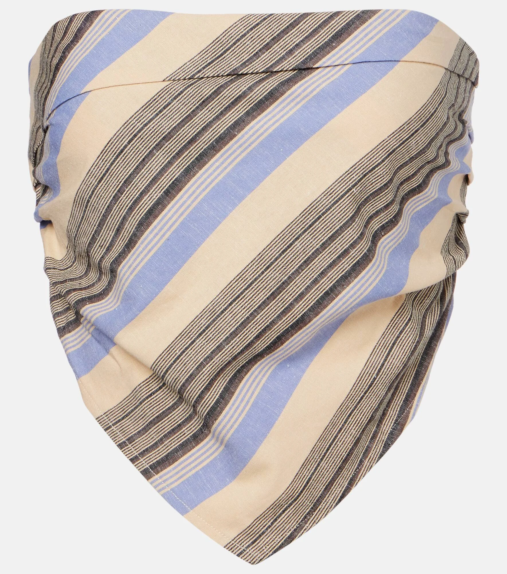 True to Faithfull's ethos, the Antibes top brings the brand's passion for travel and summertime into focus. Crafted from a blend of cotton and linen, this strapless style features a tuck detail at the front and an asymmetrical hem. Product Details - Material: 86% cotton, 14% linen - Care instructions: hand wash - Made in China - Designer color name: Marine Stripe - Item color: beige, blue - Lining: 100% cotton - Elasticated waistband - Item number: P01065213 Size & Fit - True to size - Strapless - Elasticated top - Cinched waist - Non-stretchy fabric - Cropped - The model seen in the picture is 178cm-5'10" and wearing a size XS
