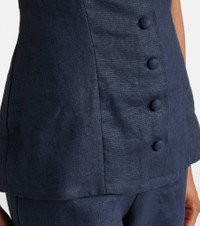 Product Details - Material: 100% linen - Care instructions: hand wash - Made in Indonesia - Designer color name: Navy - Closure: buttoned front, zipped side - Lining: 100% cotton - Item number: P01034113 Size & Fit - True to size - Cinched waist - Non-stretchy fabric - Falls to the hip - The model seen in the picture is 178cm-5'10" and wearing a size XS
