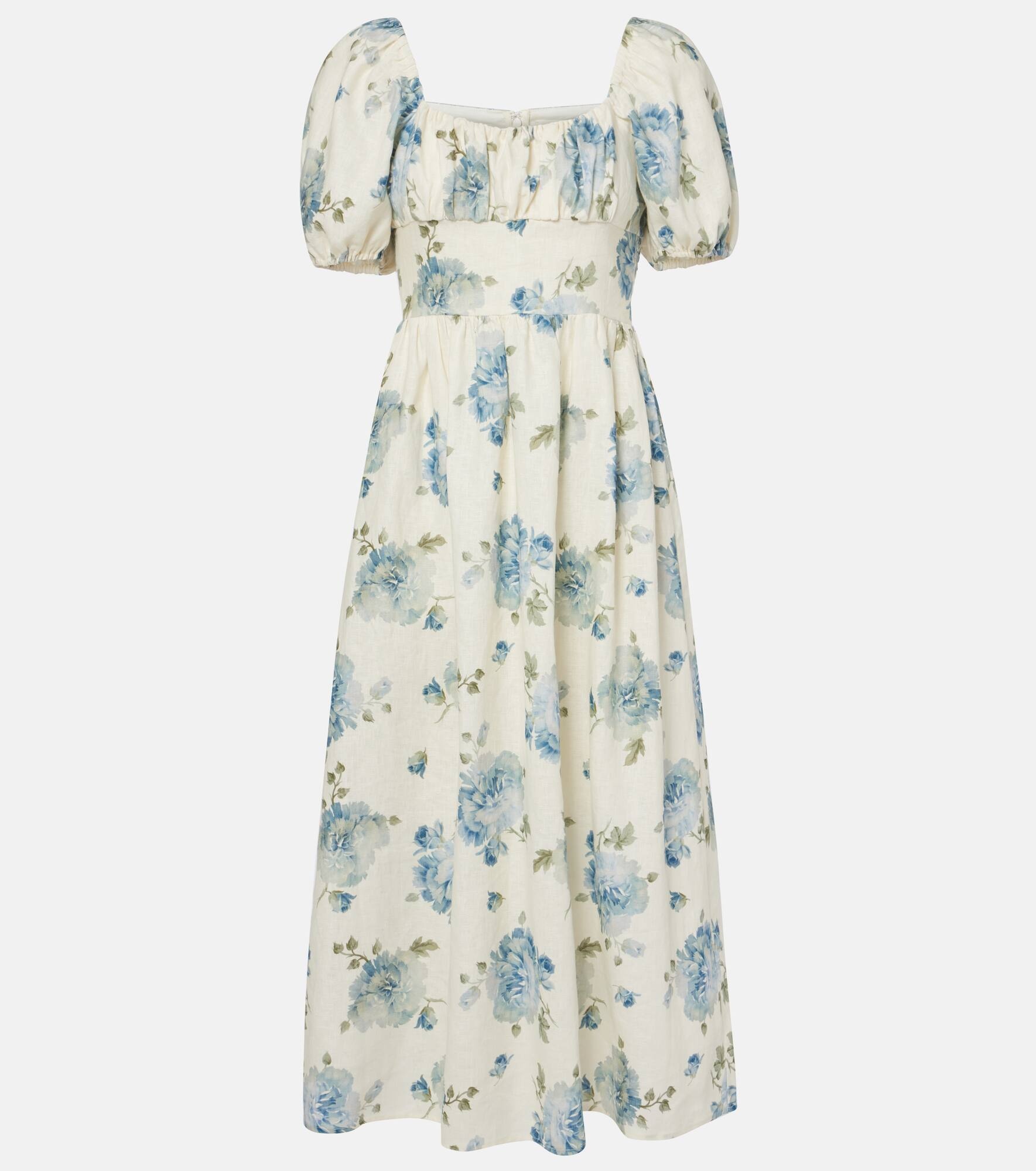 Product Details - Material: 100% linen - Care instructions: hand wash - Made in Vietnam - Designer color name: Cecile Floral-Pale Blue - Lining: 100% cotton - Item number: P01034118 Size & Fit - True to size - Cinched waist - Non-stretchy fabric - The model seen in the picture is 178cm-5'10" and wearing a size XS