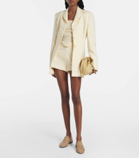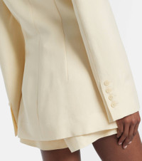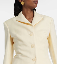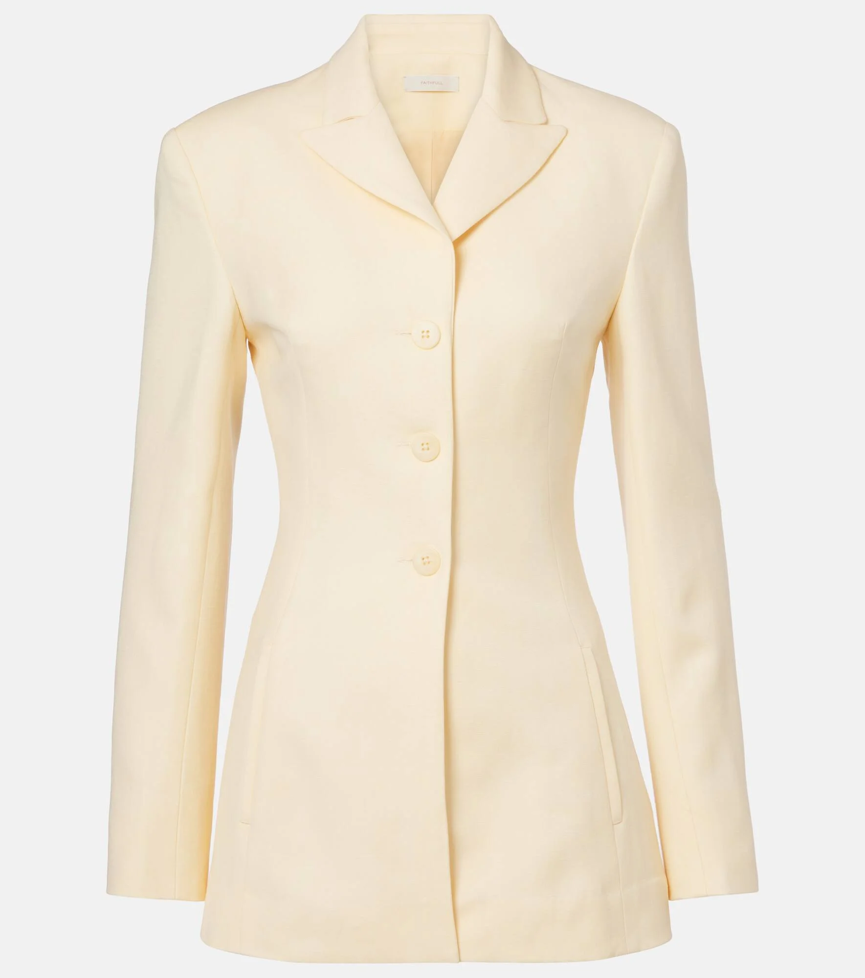 The Deni blazer from Faithfull epitomizes a summer approach to suiting. This flattering style features a single-breasted silhouette, peak lapels, and comes in a buttery yellow hue. Product Details - Material: 52.5% rayon, 26% linen, 21.5% viscose - Care instructions: dry clean - Made in China - Designer color name: Butter - Item color: ivory - Lining: 100% polyester - Blazer - Peak lapel - Cuff: four buttons - Item number: P01065186 Size & Fit - Fits small to size - we recommend trying one size larger - Shoulder pad inserts - Cinched waist - Non-stretchy fabric - Falls below the hip - The model seen in the picture is 178cm-5'10" and wearing a size S