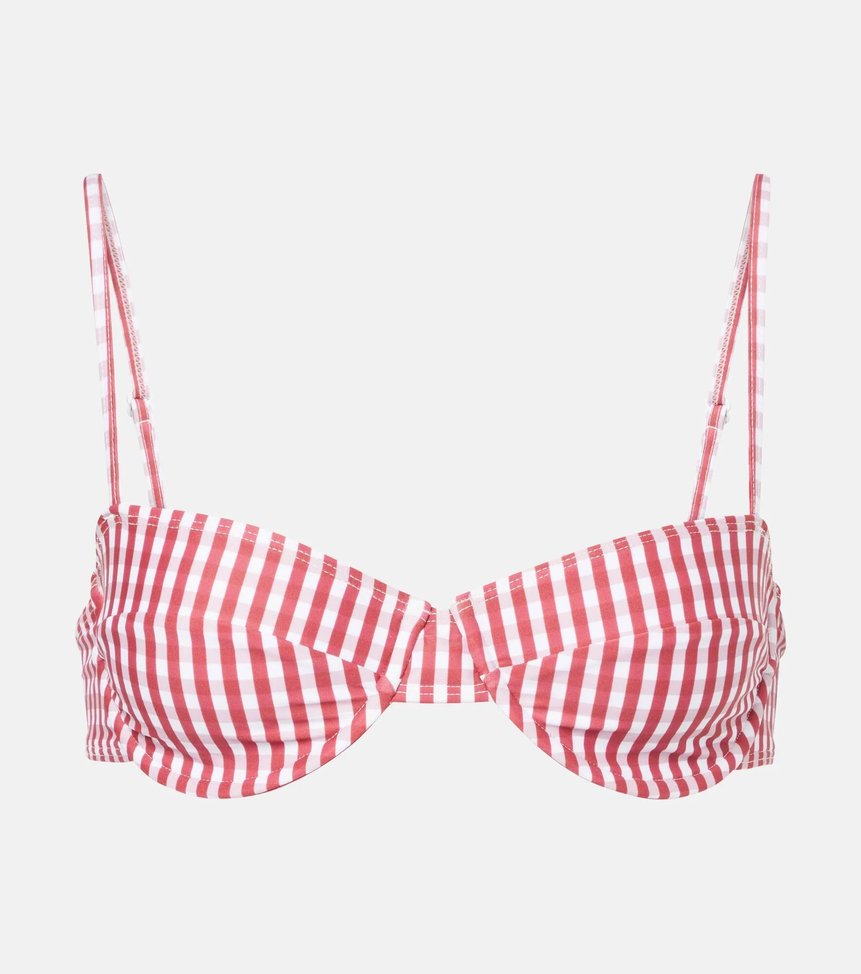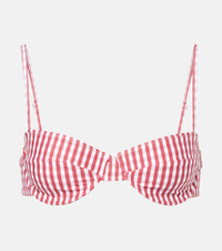 Offering medium coverage, the Farrah balconette-style bikini top features a gingham print and structured underwire construction. True to Faithfull's ethos, this design brings the brand's passion for travel and summertime into focus. Product Details - Material: 78% nylon, 22% elastane - Care instructions: hand wash - Made in Indonesia - Designer color name: Red Gingham - Item color: red - Item number: P01042247 Size & Fit - True to size - Underwired top - Unpadded Top - The model seen in the picture is 178cm-5'10", cup size B, and wearing a size XS