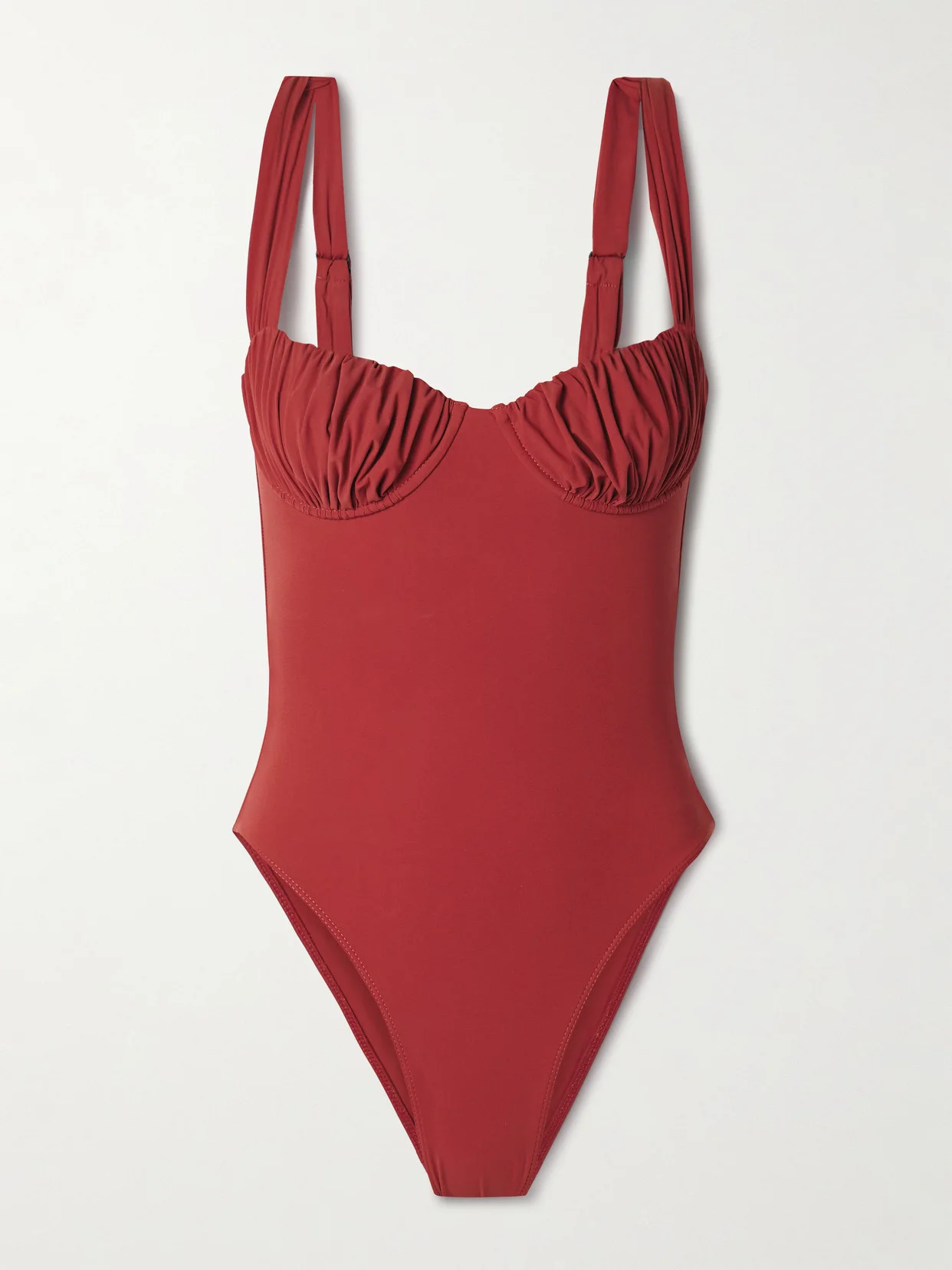 Faithfull's romantic swimwear is made by local experts to preserve traditional Balinese craftsmanship. This 'Frida' swimsuit is cut from recycled stretch fabric and has ruched cups and adjustable shoulder straps that ensure a perfect fit. Lower-Impact Materials. This product is made using at least 50% lower-impact materials or ingredients. Find out more about our NET SUSTAIN criteria here.