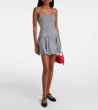 Gingham gathered cotton poplin minidress