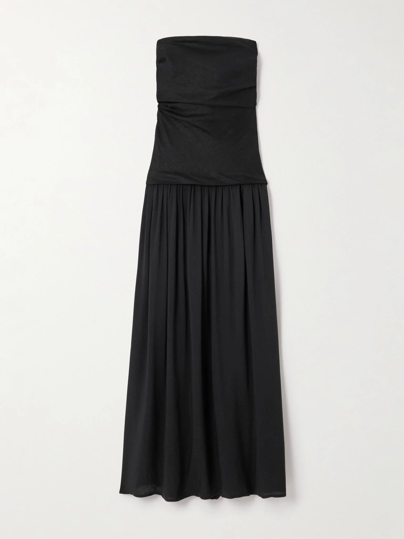 Hedy strapless gathered linen and voile maxi dress Black