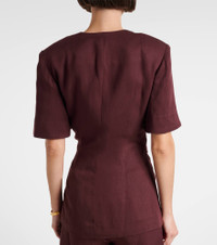 The Ida blazer from Faithfull is a comfortable choice for both relaxed looks and elevated ensembles. Crafted from a lightweight fabric, the short-sleeved style features padded shoulders and a wrap silhouette with a self-tie knot at the front. Product Details - Material: 78% Tencel®, 22% linen - Care instructions: dry clean - Made in Vietnam - Designer color name: Port - Item color: burgundy - Lining: 100% polyester - Shoulder pads - Closure: wrap-front, self-ties - Item number: P01123597 Size & Fit - True to size - Shoulder pad inserts - Cinched waist - Adjustable at the waist - Non-stretchy fabric - Falls below the hip - The model seen in the picture is 178cm-5'10" and wearing a size XS