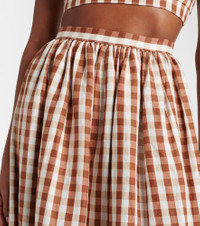 True to Faithfull's ethos, this design brings the brand's passion for travel and summertime into focus. Made purely from breezy linen, the Ida midi skirt features a sophisticated gingham print and a concealed zipper fastening at the back. Product Details - Material: 100% linen - Care instructions: machine wash at 30 degrees - Made in Indonesia - Color: brown - Designer color name: Gingham Cedar - Closure: concealed zipped back - Item number: P01130336 Size & Fit - True to size - Non-stretchy fabric - High-waisted - The model seen in the picture is 178cm-5'10" and wearing a size XS