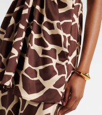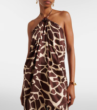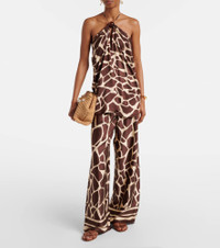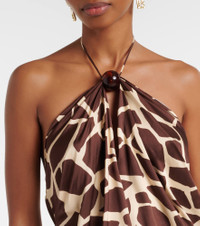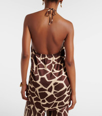 True to Faithfull's ethos, the Jensen top brings the brand's passion for travel and summertime into focus. Made from fluid satin, the design boasts a giraffe print and a stone embellishment at the halterneck. Product Details - Material: 50% viscose, 50% rayon - Care instructions: hand wash cold - Made in China - Color: brown - Designer color name: Ombra - Self-tie neck - Hem: rounded - Item number: P01166498 Size & Fit - True to size - Low back - Straight fit - Non-stretchy fabric - Falls below the hip - The model seen in the picture is 178cm-5'10" and wearing a size XS