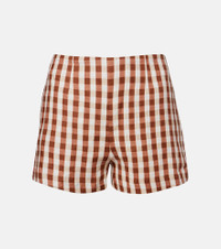 True to Faithfull's ethos, this design brings the brand's passion for travel and summertime into focus. Made purely from breezy linen, the Lila shorts are fully lined and feature a mid-rise waistline and a sophisticated gingham print. Product Details - Material: 100% linen - Care instructions: machine wash at 30 degrees - Made in Indonesia - Color: brown - Designer color name: Gingham Cedar - Lining: 100% cotton - Closure: concealed zipped back - Item number: P01123578 Size & Fit - True to size - Non-stretchy fabric - Slim-leg - The model seen in the picture is 178cm-5'10" and wearing a size XS