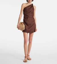 Refresh your sunny-season edit with styles from Faithfull like the Marga minidress. Playful, effortless, and undeniably cool, this style is crafted from linen and features a one-shoulder silhouette, ruched at the waist for a figure-hugging fit. Product Details - Material: 100% linen - Care instructions: hand wash - Made in Indonesia - Designer color name: Brown - Item color: brown - Lining: 100% cotton - Closure: invisible zipper - Item number: P01042193 Size & Fit - True to size - Fitted - Non-stretchy fabric - The model seen in the picture is 178cm-5'10" and wearing a size XS