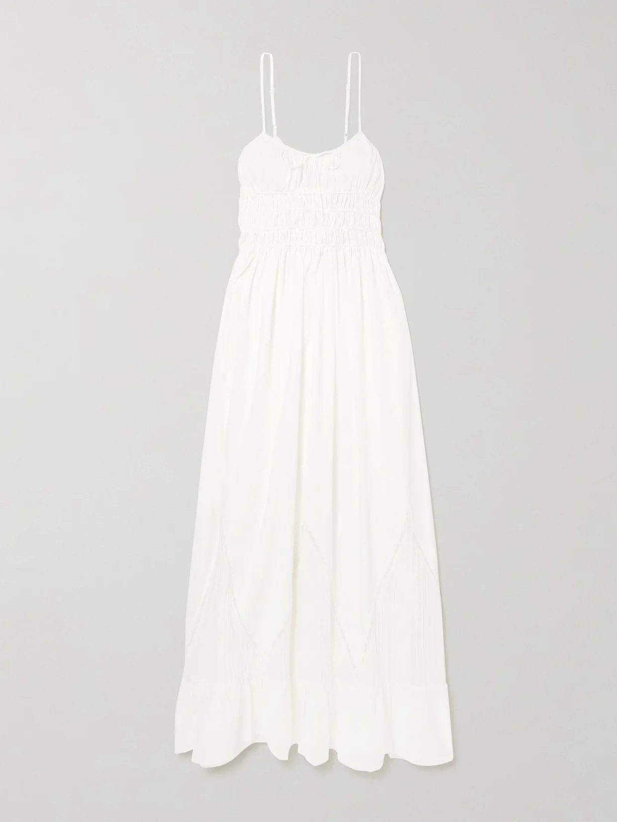 Meline Lace-trimmed Pintucked Shirred Cotton-voile Maxi Dress