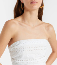 Charming and effortless, the Roja minidress is a strapless style defined by elegant broderie anglaise detailing. True to Faithfull's ethos, this design brings the brand's passion for travel and summertime into focus. Product Details - Material: 65% polyester, 35% cotton - Care instructions: hand wash - Made in Indonesia - Color: white - Designer color name: Rosa Broderie White - Item color: white - Lining: 100% cotton - Closure: invisible zipper - Item number: P01130354 Size & Fit - True to size - Strapless - Elasticated top - Cinched waist - Non-stretchy fabric - The model seen in the picture is 178cm-5'10" and wearing a size XS