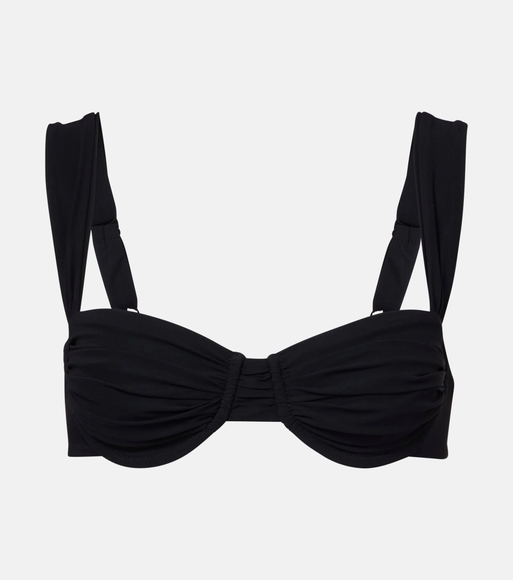 True to Faithfull's ethos, this design brings the brand's passion for travel and summertime into focus. The balconette-style Sol bikini top is an underwired design with light gathering at the cups. Product Details - Material: 79% nylon (recycled), 21% elastane - Care instructions: hand wash - Made in Indonesia - Designer color name: Black - Item color: black - Closure: clip fastening - Adjustable shoulder straps - Underwired cups - Item number: P01065216 Size & Fit - Fits small to size - we recommend trying one size larger - For larger bust sizes we recommend taking one size up - Underwired top - Unpadded Top - The model seen in the picture is 178cm-5'10", cup size B, and wearing a size S