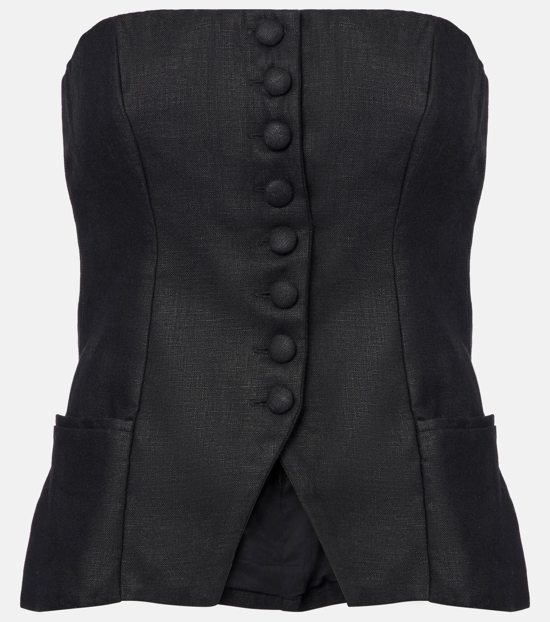 Product Details - Material: 100% linen - Care instructions: hand wash - Made in Indonesia - Designer color name: Black - Item color: black - Lining: 100% cotton - Pockets: side slit pockets - Closure: button fastening, zipped back - Item number: P01042202 Size & Fit - True to size - Strapless - Non-stretchy fabric - Cropped - The model seen in the picture is 178cm-5'10" and wearing a size XS