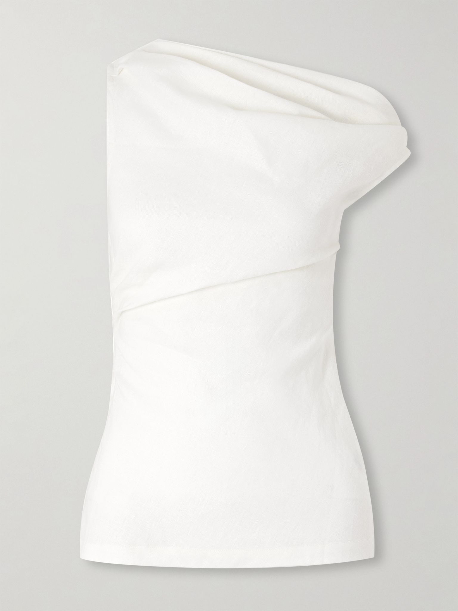 Faithfull's 'Suis' top has a draped, off-the-shoulder neckline that feels so elegant. It's made from breathable linen and has a slim fit. Wear yours with the coordinating skirt in our edit. Size & Fit - Fits true to size, take your normal size - Intended for a slim fit - Lightweight, non-stretchy fabric - Model is 177cm/ 5'10" and is wearing a size XSmall Model measurements: - Bust: 80cm/ 31.5" - Waist: 60cm/ 23.5" - Hip: 89cm/ 35" Details & Care - White linen - Concealed hook and zip fastening at side - 100% linen - Dry clean