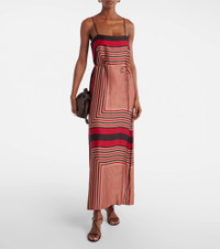 True to Faithfull's ethos, this design brings the brand's passion for travel and summertime into focus. The Svea slip-style maxi dress features a fluid silhouette with a straight neckline, complemented by a detachable waist tie and all-over geometric print. Product Details - Material: 50% viscose, 50% rayon - Care instructions: hand wash - Made in China - Designer color name: Ylva Print - Item color: red, brown, beige - Adjustable shoulder straps - Long vent - Item number: P01093364 Size & Fit - True to size - Low back - Loose fit, comes with belt - Non-stretchy fabric - slit length 32cm-12.5" - The model seen in the picture is 178cm-5'10" and wearing a size XS
