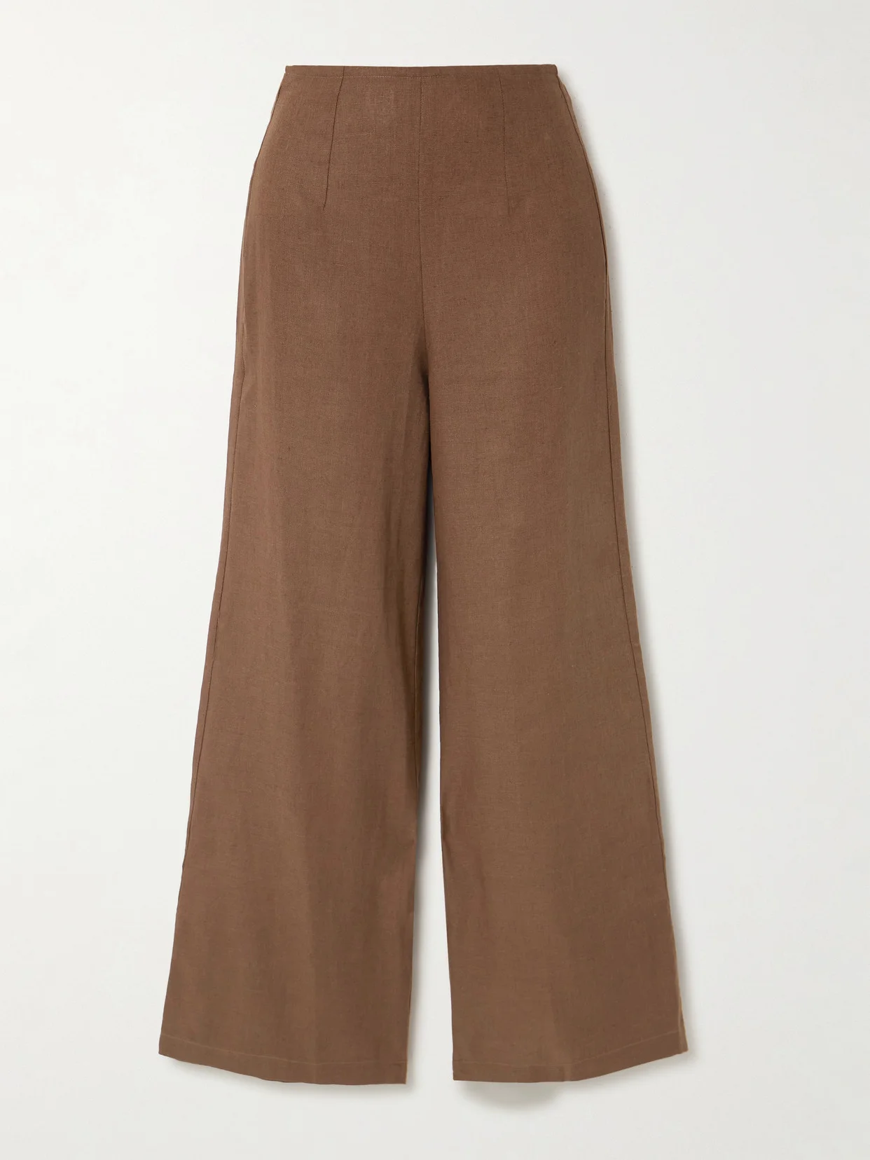 Faithfull's 'Syna' pants strike the perfect balance between ease and elegance. Made from breezy certified linen, they sit high on the waist and fall to roomy wide legs that skim the ankles. Complement the 'Clay' shade with similar earthy tones. Lower-Impact Materials. This product is made using at least 50% lower-impact materials or ingredients. Find out more about our NET SUSTAIN criteria here.