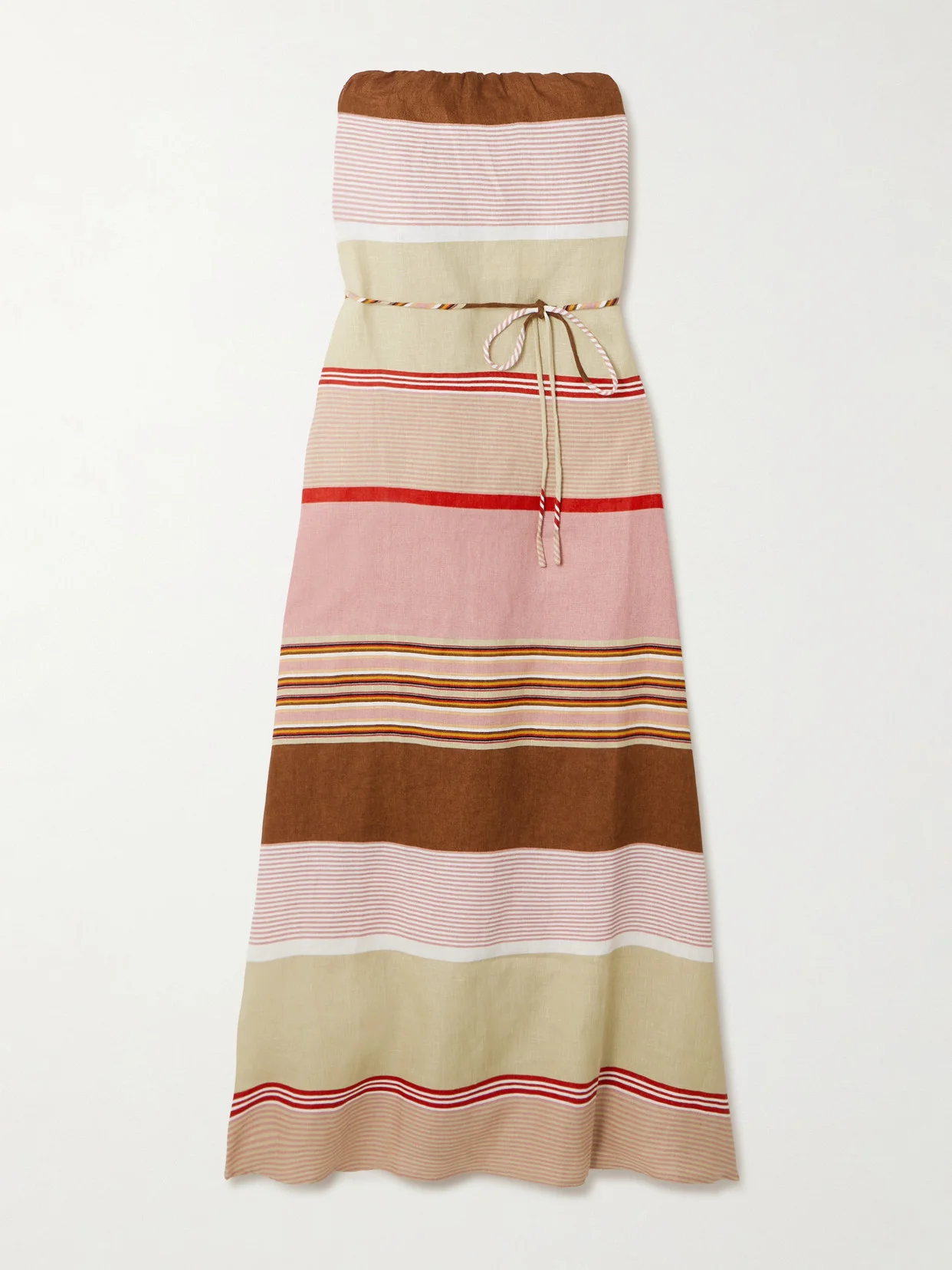 Yolina Strapless Belted Striped Linen Maxi Dress