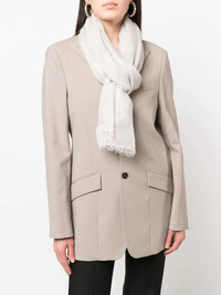 abstract-print frayed-edge scarf multicolour modal-cotton-cashmere blend fine knit abstract pattern print frayed edge POSITIVELY CONSCIOUS: This Planet Conscious product contains at least 50% eco-materials, which are independently certified as or widely recognised for having a lower environmental impact. Made in Italy Composition Modal 57%, Cotton 37%, Cashmere 6% SIZE & FIT Model measurements Height 5 ft 10 in(1.78 m) Bust/Chest 31.49 in(80 cm) Hips 36.22 in(92 cm) Waist 25.59 in(65 cm) Measurement LENGTH 59.05 in(150 cm) WIDTH 53.14 in(135 cm) Washing instructions Dry Clean Only