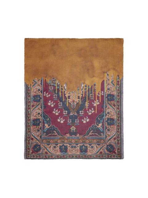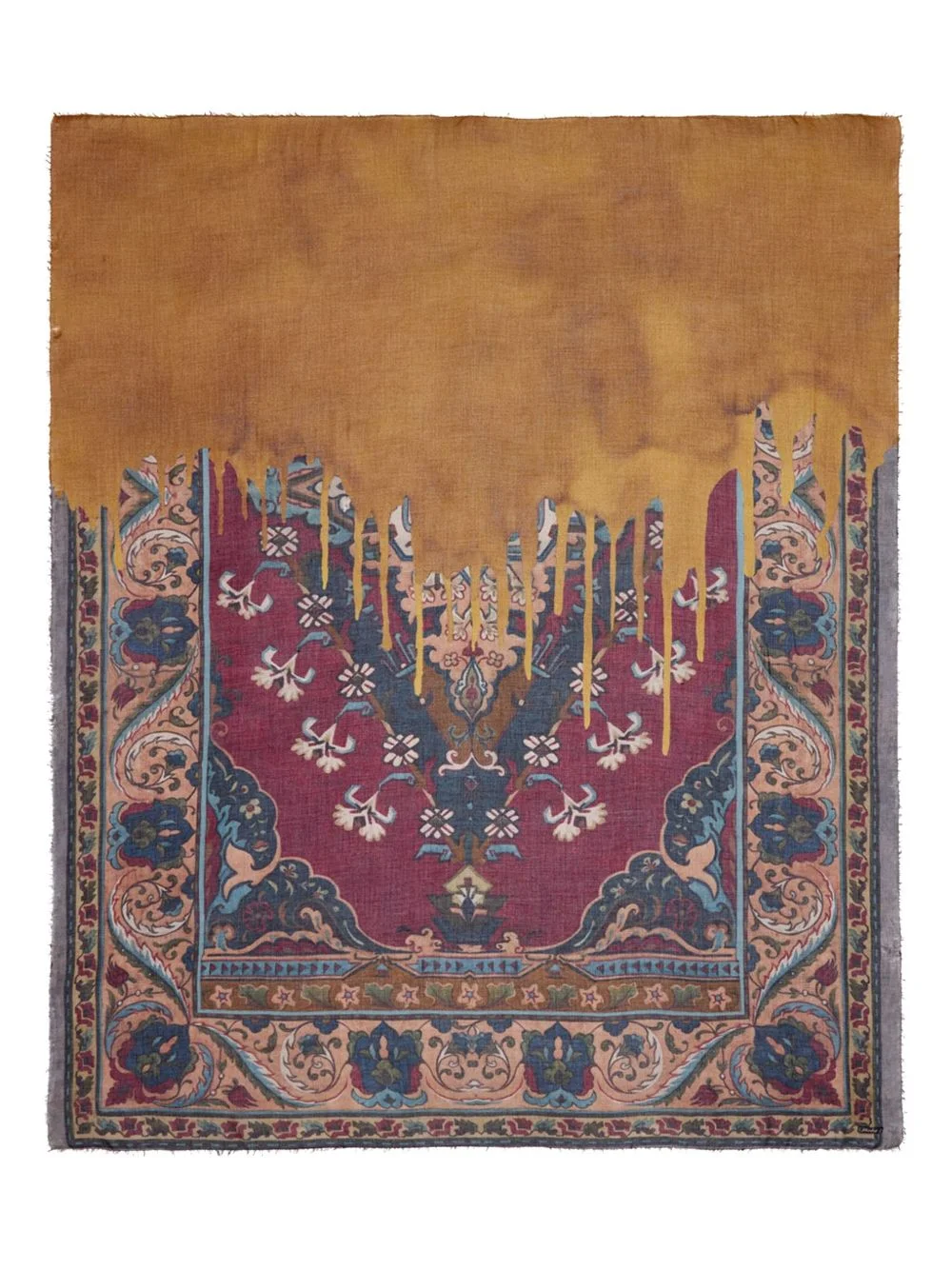 carpet-patterned scarf Highlights - Brown - Carpet pattern - Frayed edges - Dripping effect Made in Italy Composition Modal 90%, Cashmere 10% SIZE & FIT Measurement LENGTH 66.92 in(170 cm) WIDTH 55.11 in(140 cm) Washing instructions Read Manufacturer Guidelines