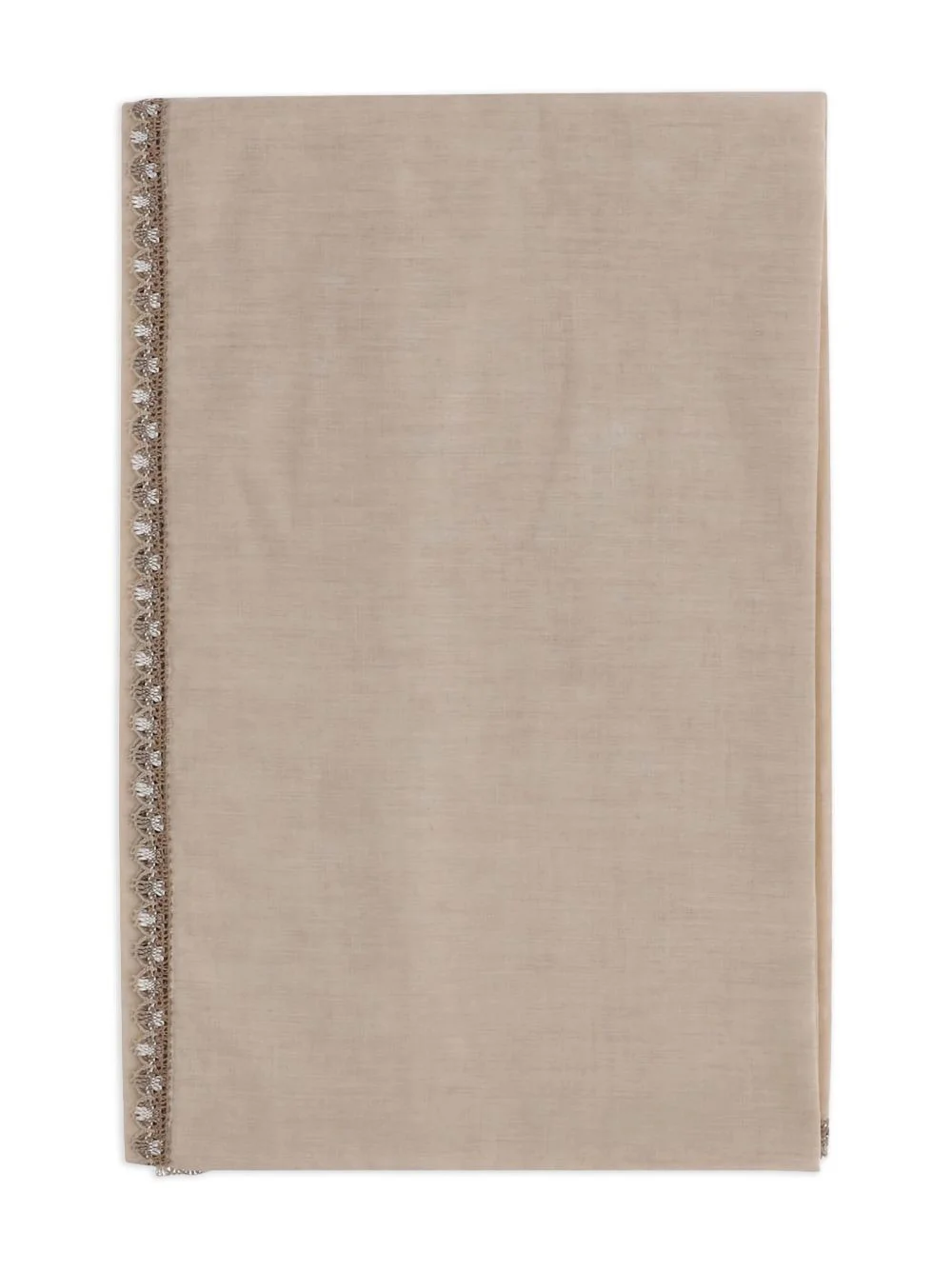 cashmere-blend scarf Highlights - Sand beige - Embroidered motif - Rectangle shape - Scallop edge Made in Italy Composition Modal 48%, Cotton 43%, Cashmere 6%, Acetate 3% SIZE & FIT Measurement LENGTH 53.14 in(135 cm) WIDTH 53.14 in(135 cm)