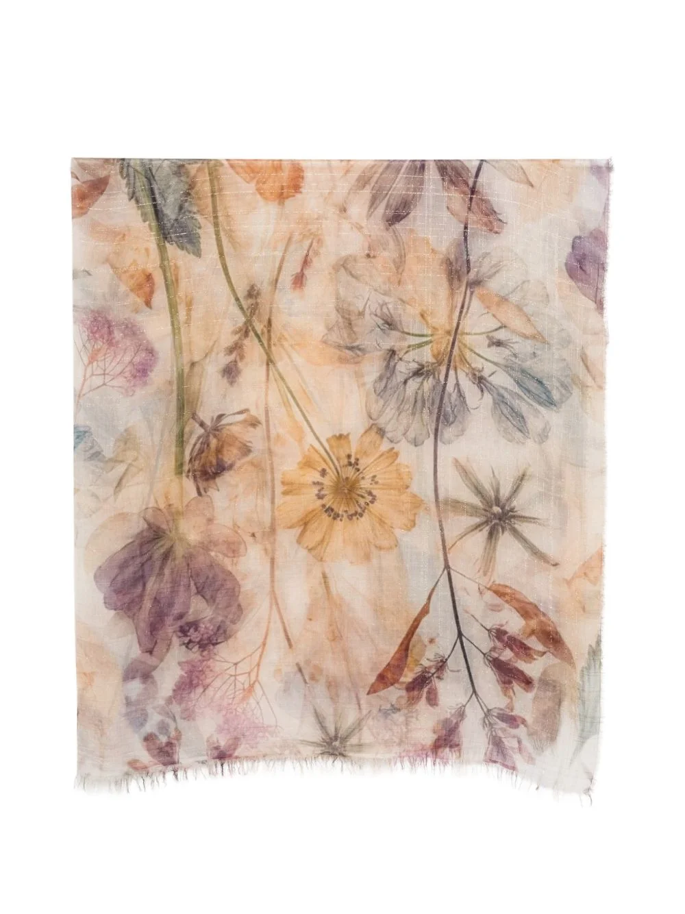 floral-print scarf Highlights - Beige - Floral print - Fringed edge Made in Italy Composition Modal 82%, Cashmere 9%, Viscose 7%, Polyester 2% Washing instructions Hand Wash