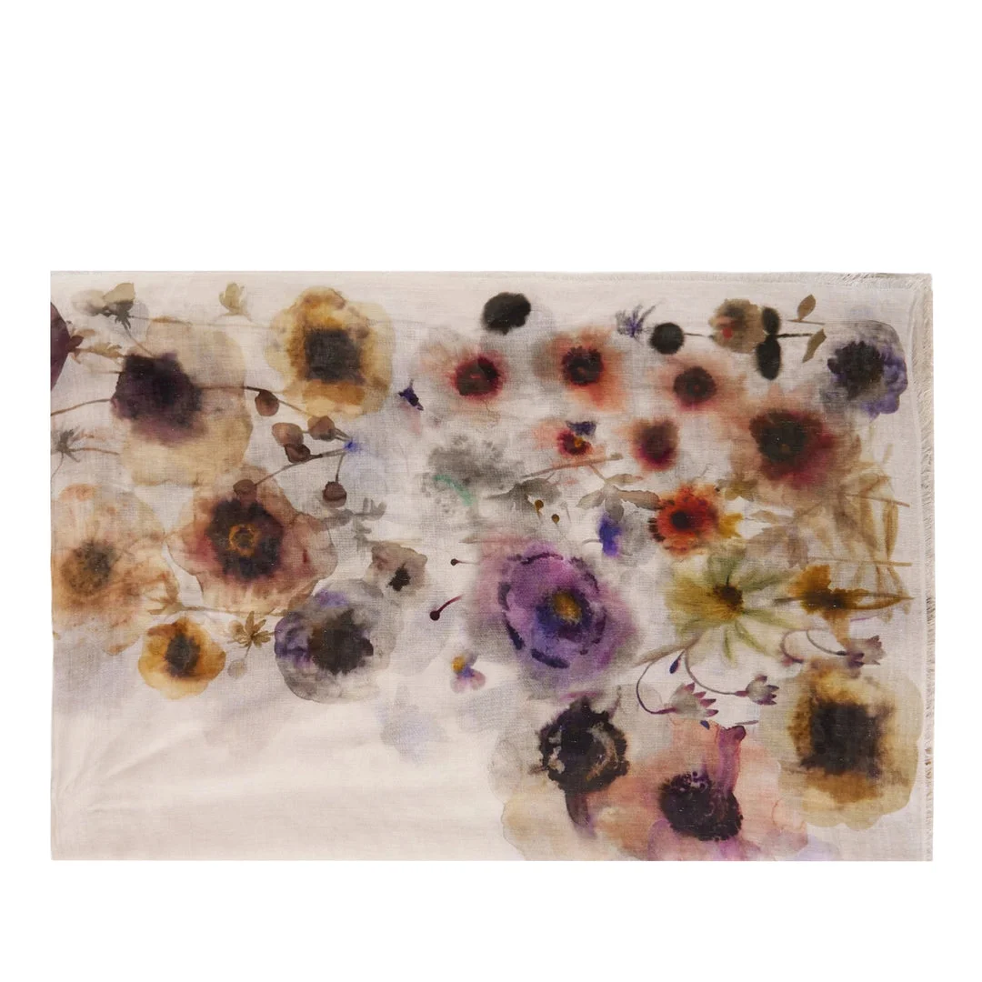 600080914FLR0OS / E26 2035/00/1170 - Generous 140x180cm dimensions - Watercolor floral print design - Soft cream base with multi-color blooms - Purple, coral, and amber color palette - Fine Italian fabric construction - Artistic painterly wash effects - Versatile styling options The Faliero Sarti Panse Scarf delivers artistic sophistication with its dreamy watercolor floral composition across a generous 140x180cm canvas. Crafted from fine Italian fabric featuring soft purple, coral, and amber blooms that appear to float across a delicate cream base with painterly wash effects. The oversized dimensions and ethereal botanical motifs create an elegant statement piece that transforms any ensemble with artistic flair.