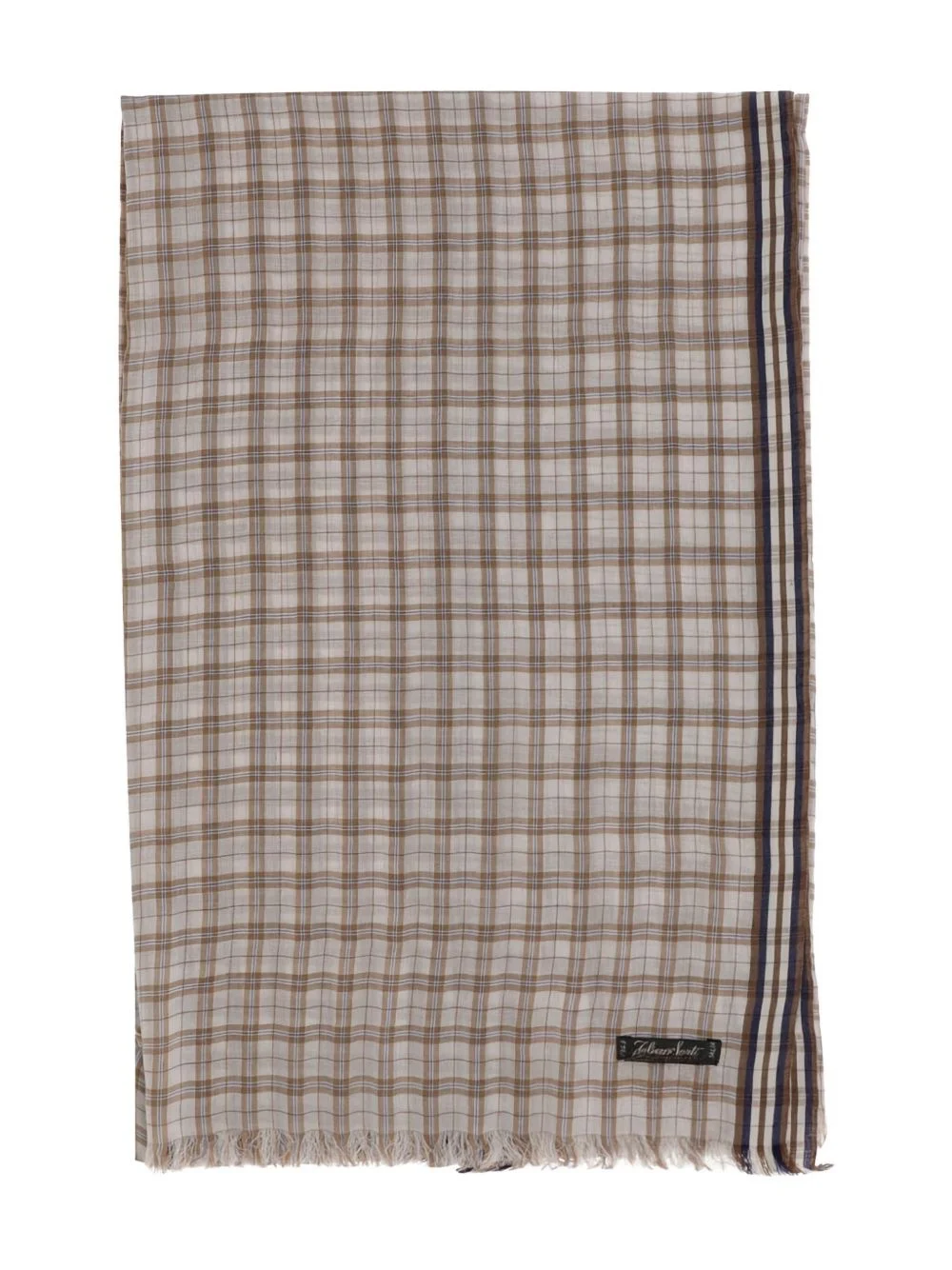 checked scarf Highlights - Sesame beige - Wraparound style - Applique logo - Frayed edge - Rectangle shape Imported Composition Silk 50%, Cotton 50%