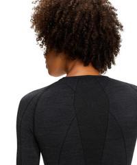 - Suitable for cold to very cold conditions - High insulating and warming Merino wool-mix with odour resistant qualities - Moisture wicking 2-layer construction to keep you dry and comfortable - Knitted to the anatomical shape of the body and sports movement for maximum freedom of movement - Suitable for low to medium intensity activities - Longsleeved shirt with comfortable fit Attributes Gender: Women Pattern: Blockcolour Transparency: Opaque Material: 55% Virgin Wool, 43% Polyamide, 2% Elastane Collar: Round-neck Feel: Unrestricted freedom of movement|Beautifully soft Form: Regular fit Sleeve length: long sleeved Style: Sporty Item description Thanks to the natural materials, this long-sleeved shirt in comfortable fit keeps your body extra-warm in cold to very cold temperatures, while also working to neutralise odours. The combination of finest merino wool and high-quality functional materials ensures superior moisture wicking and thermal management. Maximum freedom of movement is guaranteed thanks to a perfect fit.