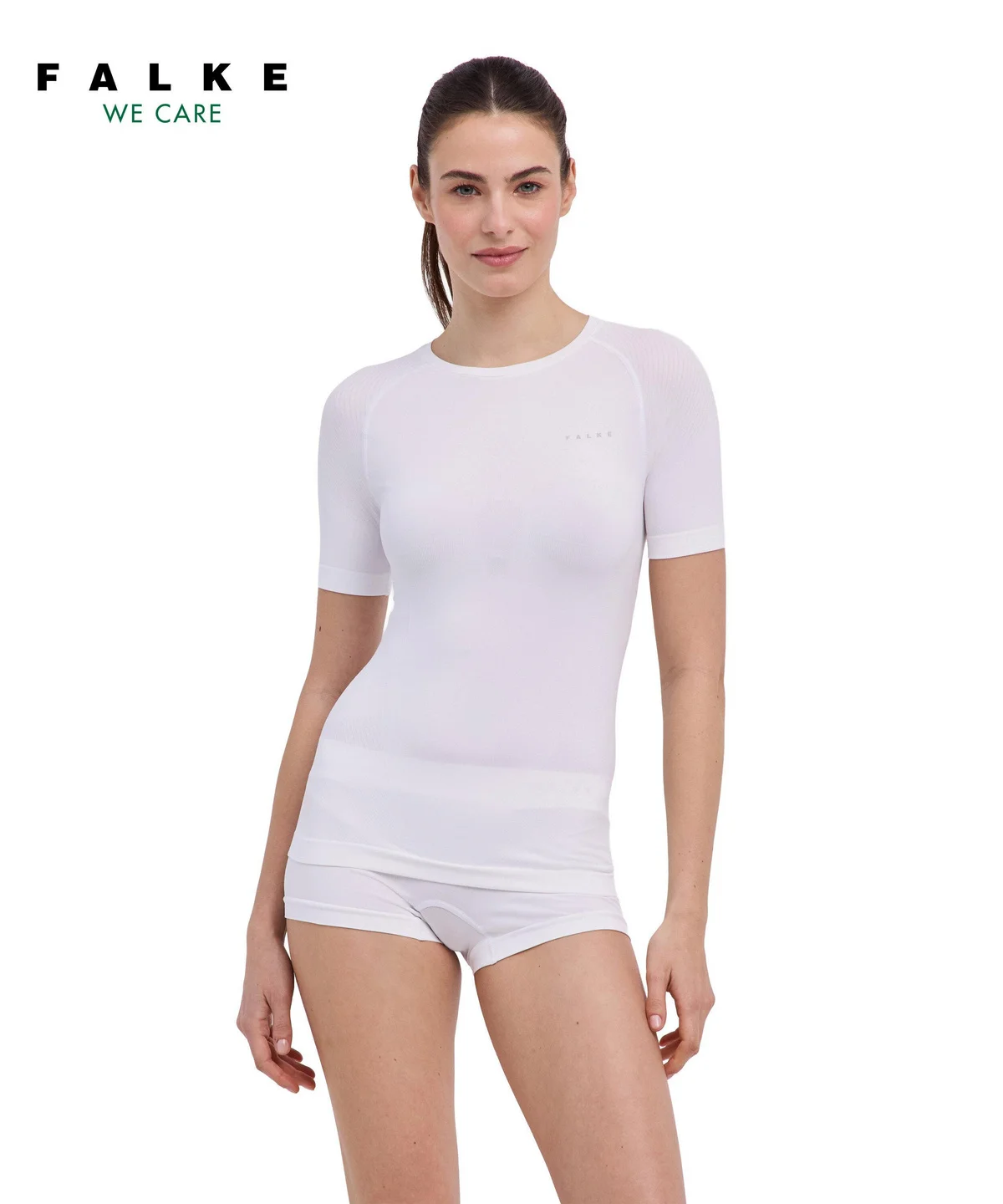 - Suitable for warm and cold conditions - Keeps the body warm and dry during higher levels of activity - FALKE – WE CARE – Yarn composition: resource-saving, socially responsible, traceable - Moisture wicking 2-layer construction to keep you dry and comfortable - Knitted to the anatomical shape of the body and sports movement for maximum freedom of movement - Suitable for medium to high intensity activities - Shortsleeved shirt with close body fit Attributes Gender: Women Pattern: Blockcolour Transparency: Opaque Material: 69% Polyamide, 26% Polyester, 5% Elastane Collar: Round-neck Feel: Unrestricted freedom of movement Form: Tight fit Sleeve length: short sleeved Style: Sporty Sustainability: Yes Item description The short-sleeved shirt in a new, sporty design and close fit keeps the body dry and pleasantly tempered in warm to cold temperatures. The combination of high-quality recycled materials ensures perfect moisture and temperature regulation. The optimum fit guarantees maximum freedom of movement.
