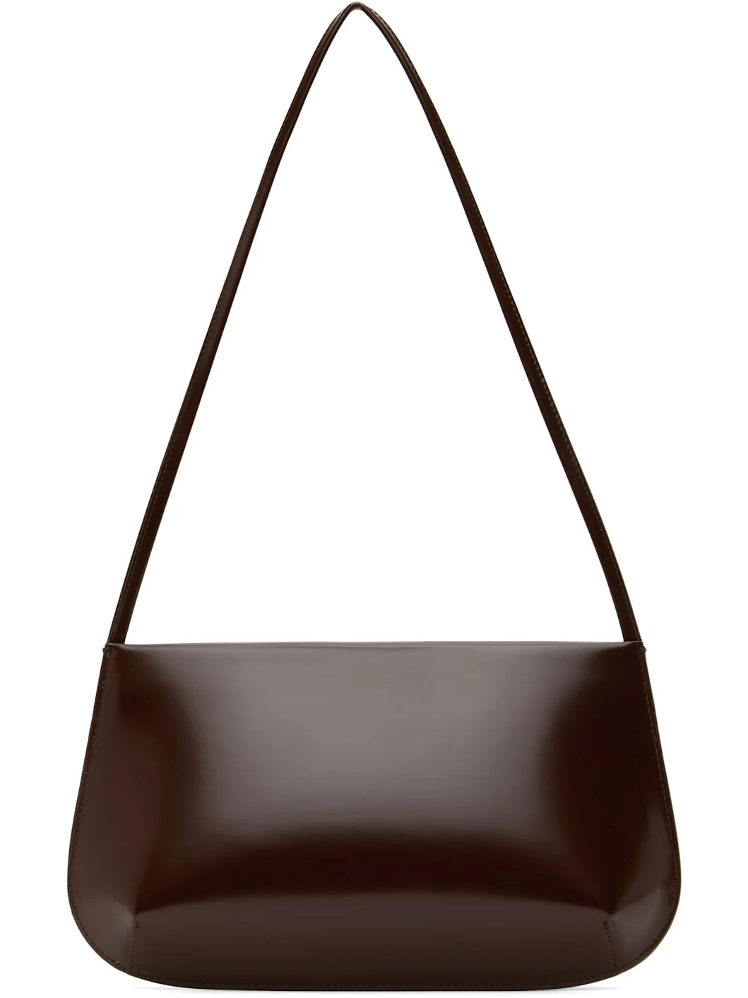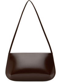 Polished spazzolato leather shoulder bag in brown. · Fixed shoulder strap · Magnetic closure · Patch pocket at interior · Twill lining · H6.5" x W11.5" x D2" Supplier color: Choc Leather. Made in Italy 251709F048012