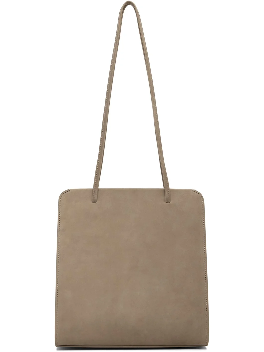 Nubuck shoulder bag. · Twin shoulder straps · Patch pocket at back face · Accordion panel at sides · Magnetic closure · Patch pocket at interior · Twill lining · H9.75" x W9.25" x D2.75" Supplier color: Biche nubuck Leather. Made in Italy 252709F048007
