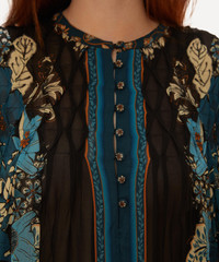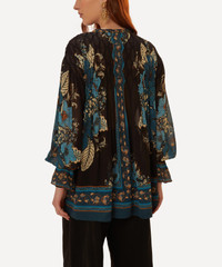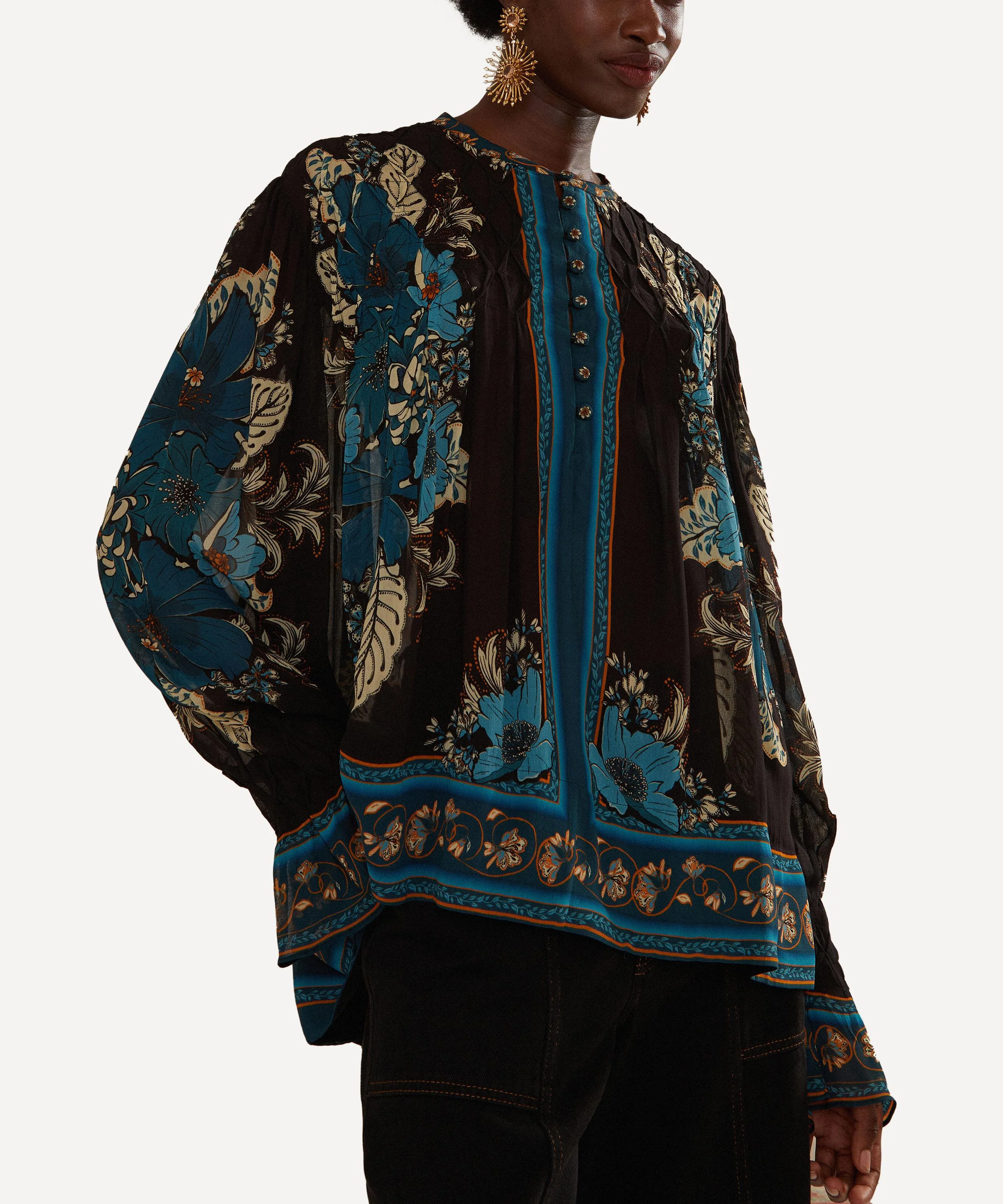 DETAILS Smocked blouse Bee and blossom print Round neckline Buttoned front closure Long bouffant sleeves with smocked cuffs Covered buttons COMPOSITION & CARE 100% Viscose Machine wash on delicate cycle