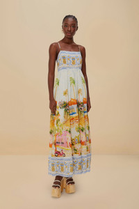 Step into a world of vibrant elegance with the multicolor aracati maxi dress by FARM Rio. Showcasing a mesmerizing fusion of playful hues and exquisite nature-inspired patterns, this dress effortlessly captures the essence of tropical charm. Its flowing silhouette drapes beautifully, while the square neckline adds a touch of classic sophistication. Perfect for sunlit gatherings or moonlit strolls, this maxi dress is a celebration of joyful style. - Closure: Invisible zipper at side seam - Sleeve type: Sleeveless Ref.: sku_336581 Composition 60% COTTON 40% VISCOSE Care Instructions MACHINE WASH GENTLE CYCLE, DO NOT BLEACH, DRY FLAT, IRON AT MEDIUM HEAT, DO NOT DRY CLEAN Product manufacturing: CHINA Product printing: CHINA