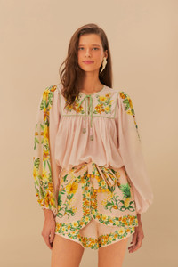 Unveil joy with the Pink Botanical Beauty LENZING™ ECOVERO™ Euroflax™ Shorts. This enchanting piece features vibrant botanical prints bursting with lively yellows and greens, set on a soft pink canvas. The playful wrap-around tie detail adds a touch of elegance and whimsy. Crafted from responsible materials, these shorts blend style with a gentle nod to thoughtful fashion, inviting a refreshing breeze of nature into your wardrobe. LENZING™ ECOVERO™: the eco-responsible fibers generate up to 50% lower emissions and water impact compared to generic viscose. Ref.: sku_337785 Composition 55% LINEN 45% VISCOSE Care Instructions MACHINE WASH GENTLE CYCLE, DO NOT BLEACH, DRY FLAT, IRON AT MEDIUM HEAT, DO NOT DRY CLEAN Product manufacturing: CHINA Product printing: CHINA