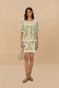 Embrace the charm of the Folk Floral Off-White Scoop Neck Short Sleeve Blouse by FARM Rio. This delightful piece showcases intricate embroidery, weaving a garden of whimsical florals in vibrant hues. The blouse's airy silhouette and delicate puff sleeves offer a playful elegance. Crafted from responsible materials, it ensures you feel as good as you look. Perfect for infusing artistic flair into any ensemble. FARM Rio Ref.: sku_332177 Composition 100% COTTON Care Instructions MACHINE WASH DELICATE CYCLE, DO NOT BLEACH, DO NOT TUMBLE DRY, LINE DRYING, IRON AT MEDIUM HEAT, DO NOT DRY CLEAN Product manufacturing: INDIA Product printing: INDIA