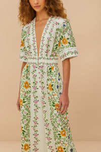 Embrace the charm of nature with our Off-White Folk Floral Lenzing™ Ecovero™ Euroflax™ Jumpsuit. This piece features a playful V neckline and captivating floral patterns in vibrant hues. The relaxed silhouette is adorned with intricate embroidery, offering a soft touch of elegance. Made with responsible materials, this jumpsuit wraps you in comfort and style, perfectly embodying FARM Rio's signature warmth and playful spirit. LENZING™ ECOVERO™: the eco-responsible fibers generate up to 50% lower emissions and water impact compared to generic viscose. FARM Rio Ref.: sku_332952 Composition 55% LINEN 45% VISCOSE Care Instructions MACHINE WASH GENTLE CYCLE, DO NOT BLEACH, DO NOT TUMBLE DRY, LINE DRYING, IRON AT LOW HEAT, CRY CLEAN WIH ANY SOLVENT EXCEPT TRICHLOROETHYLENE Product manufacturing: CHINA Product printing: CHINA