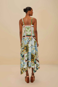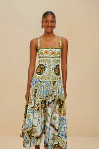 Step into a world of vibrant wonder with the Multicolor Latin Trip Scarves Organic Cotton Midi Dress by FARM Rio. This captivating piece features a playful patchwork of lively patterns, each telling its own story. The square neckline and flowing silhouette complement the whimsical design, while responsible materials make it a thoughtful choice. Let the colorful print swirl around you, embracing the spirit of warmth and adventure. - Closure: Invisible zipper at center back - Button type: Plastic button - Sleeve type: Sleeveless GOTS-certified organic cotton has a lower environmental impact than conventional cotton, as it reduces water usage, greenhouse gas emissions, and the amount of chemicals used. Ref.: sku_335811 Composition 100% COTTON Care Instructions MACHINE WASH GENTLE CYCLE, DO NOT BLEACH, DO NOT TUMBLE DRY, LINE DRYING, IRON AT LOW HEAT, DO NOT DRY CLEAN Product manufacturing: CHINA Product printing: CHINA
