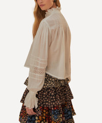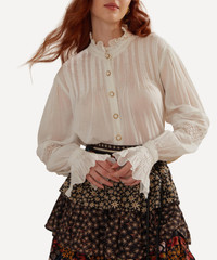 DETAILS Cotton blouse Banded collar Buttoned front and cuffs Off-white hue Embroidered and ruffle detailing COMPOSITION & CARE 100% Cotton Machine wash on delicate cycle