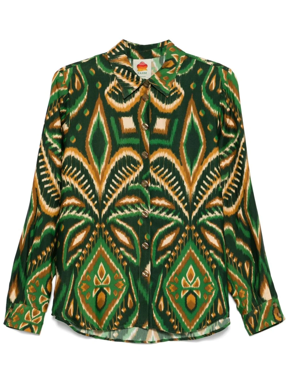 Pineapple Ikat shirt Highlights - Dark green - Cotton - Satin finish - Abstract pattern print - Classic collar - Long sleeves - Buttoned cuffs - Straight hem Imported Composition Cotton 100% SIZE & FIT Model measurements Height 5 ft 9 in(1.75 m) Bust/Chest 31.88 in(81 cm) Hips 34.64 in(88 cm) Waist 24.01 in(61 cm) FittingInformation Designed to be unstructured, offering a loose fit throughout Made from a midweight non-stretch fabric Washing instructions Machine Wash