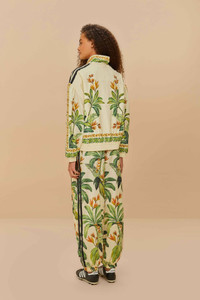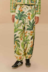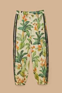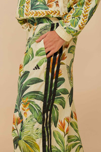 Embrace the essence of tropical flair with the adidas tropical breeze cream white pants. Crafted from responsible materials, these pants feature enchanting embroidery and a lush botanical print bursting with vibrant greens and oranges. The relaxed silhouette and elastic cuff details add an effortless charm, while the signature adidas stripes lend a playful touch, making them a perfect blend of style and comfort for any occasion. Since 2014, we have been blending our unique prints with the three most famous stripes in the world, connecting Adidas' urban energy with the essence of Brasil. Discover our new Adidas <3 FARM Rio collection, where modern streetwear meets a print lover's paradise, to stand in the sunshine while connecting with your own light. Ref.: sku_JD6300