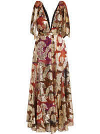 abstract-pattern print maxi dress Highlights - Ruby red - Top tie fastening - V-neck - V-back - Flared hem Imported Composition Viscose 100% Washing instructions Dry Clean Only