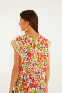 Dive into vibrant charm with the Banana Flowers Blouse from FARM Rio. Bursting with tropical yellow and green hues, this playful piece showcases a relaxed silhouette adorned with delicate floral embroidery that dances across the fabric. Lightweight and breezy, its soft material embraces your skin gently, making it perfect for layering over swimwear or pairing with sun-kissed days. Celebrate joyful moments wrapped in effortless Brazilian flair and spirited ease. Ref.: 344796