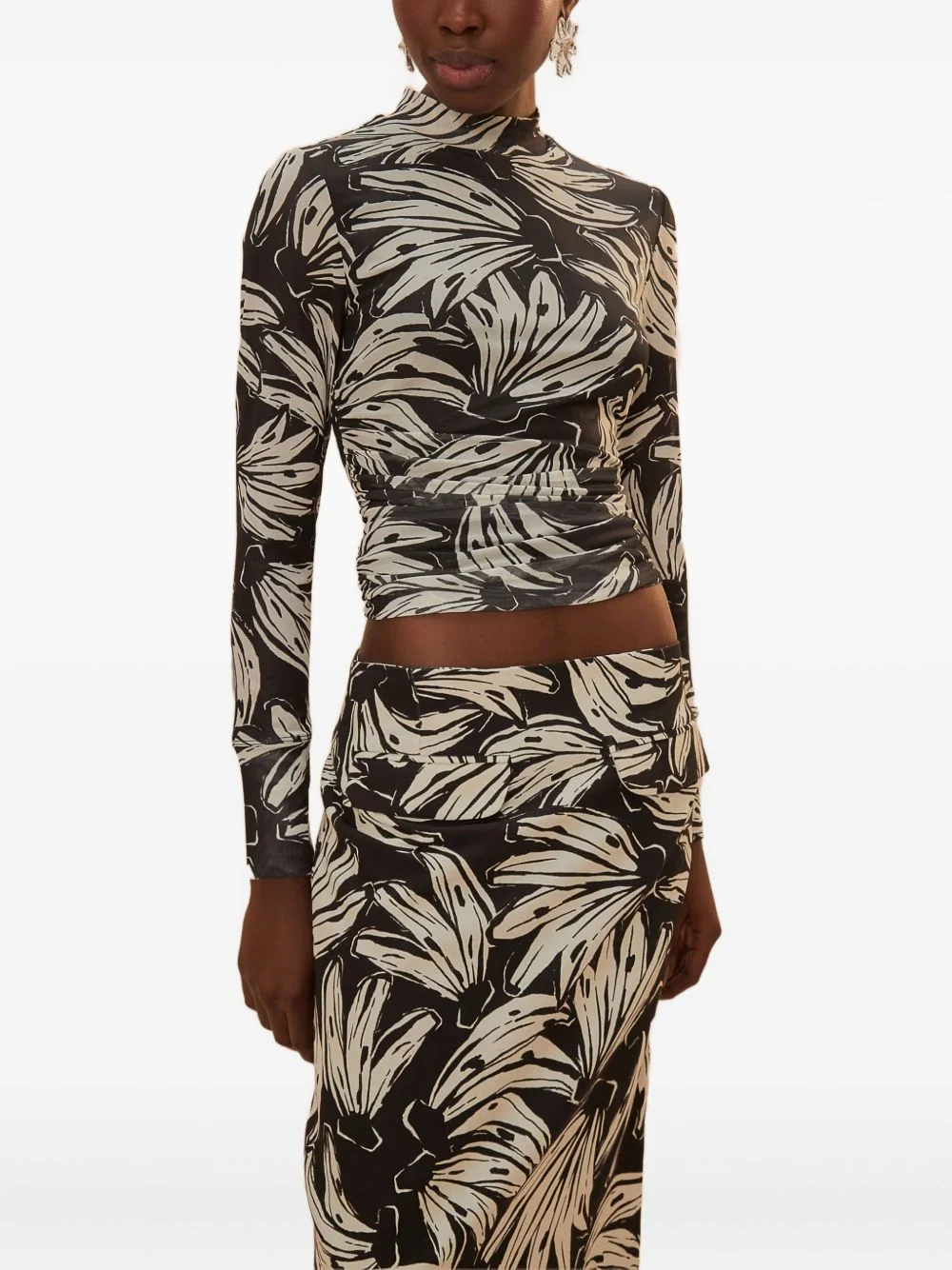 banana-print turtleneck T-shirt Highlights - Black - Banana print - Mock neck - Long sleeves - Straight hem Imported Composition Polyester 93%, Elastane 7% Washing instructions Read Manufacturer Guidelines