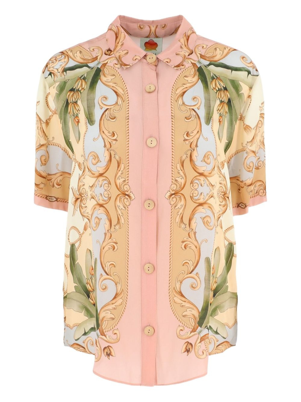 Banana Royalty Kaleidoscope floral print button-up shirt